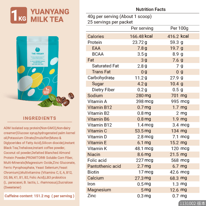 ⚠️ THE VEGAN’s “Milk Tea / Milk / Latte” flavors refer to taste profiles only. All products are 100% plant-based and contain no dairy ingredients.