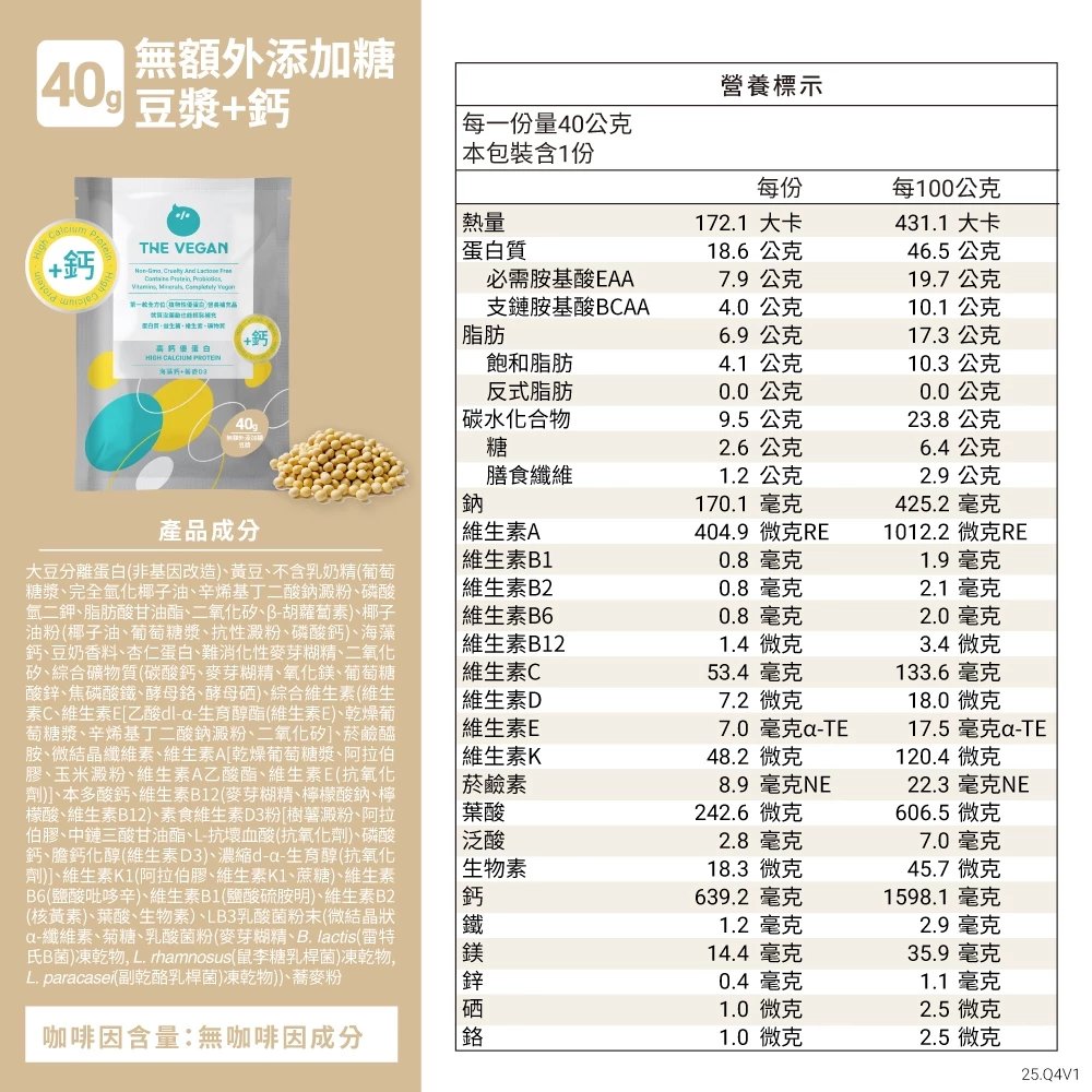 豆漿的味道你最懂,我們只做加鈣,不額外加糖。