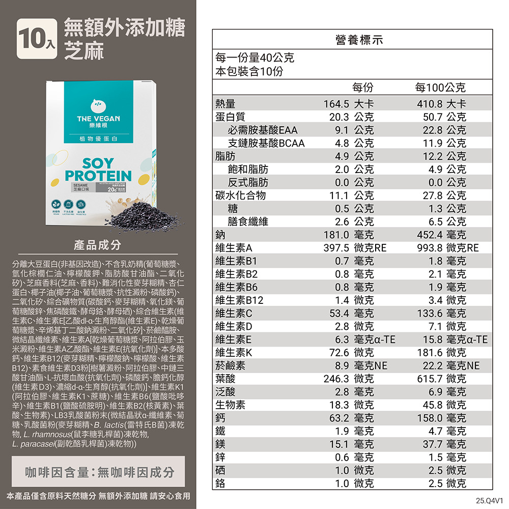 【樂維根】經典植物優蛋白 - 無額外添加糖芝麻(10入隨身包)