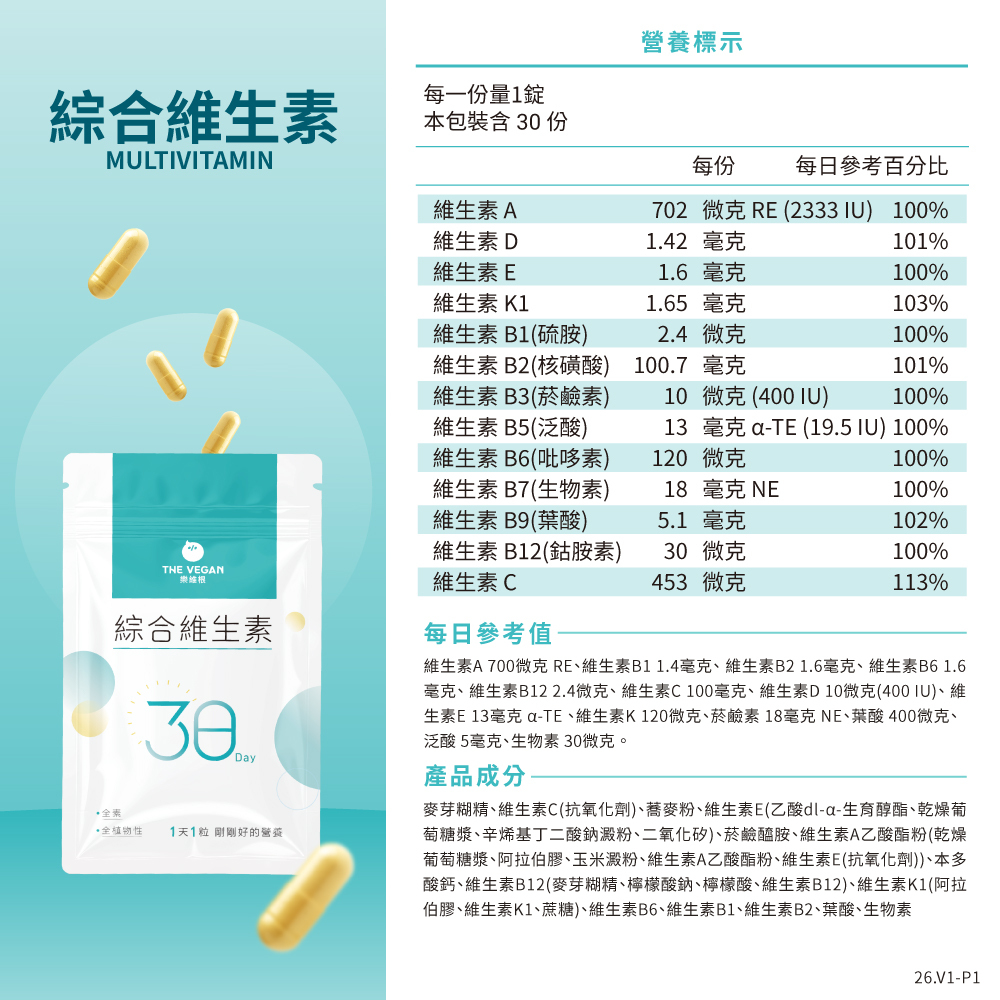 🩵 6大黃金營養素:維生素A/B群/C/D/E/K₁